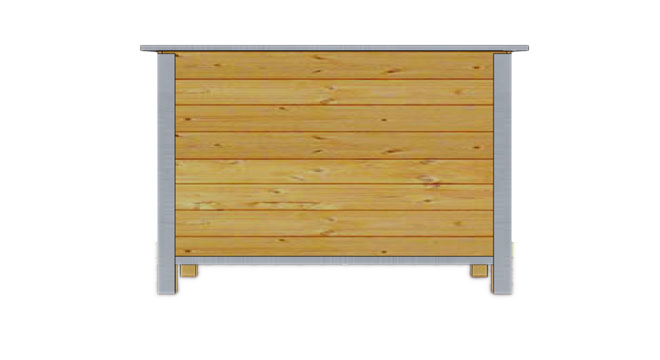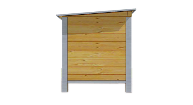 Niche extérieure avec un toit recouvert de tôle galvanisée amovible permettant un nettoyage facile.Toutes les arêtes sont protégées par des profilés en acier galvanisé. Les doubles parois sont assemblées avec des planches en sapin et de polystyrène recouvert d’un contreplaqué à l’intérieur pour une isolation efficace.